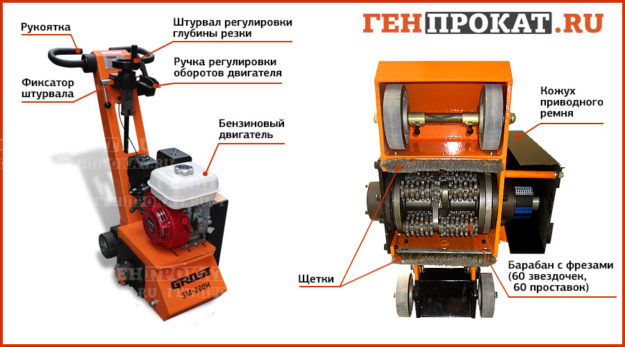 Бензиновая фрезеровальная машина GROST SM-200H по бетону удобно