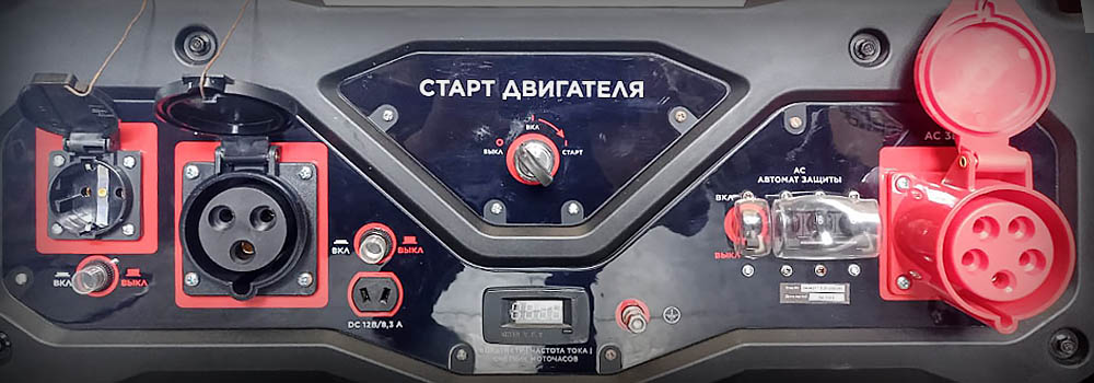 1: 380V (32А) / 1: 220V (16А до 3.5 кВт) / 1: 220V силовая (32А до 7 кВт) / 1: 12V (DC 8.3А)