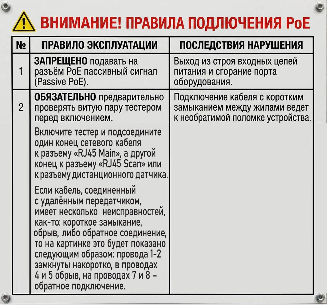 Модель NF8601W имеет возможность тестирования PoE – питания сетевых устройств по Ethernet кабелю, и позволяет определить наличие питания, напряжение и отображает проводники, к которым подведено питание.