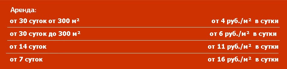 на период аренды от 30 дней (до 300 м²) в сутки: