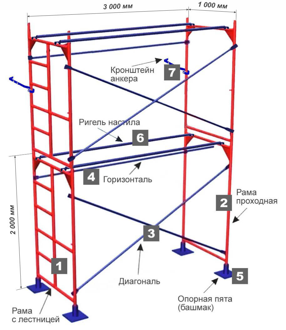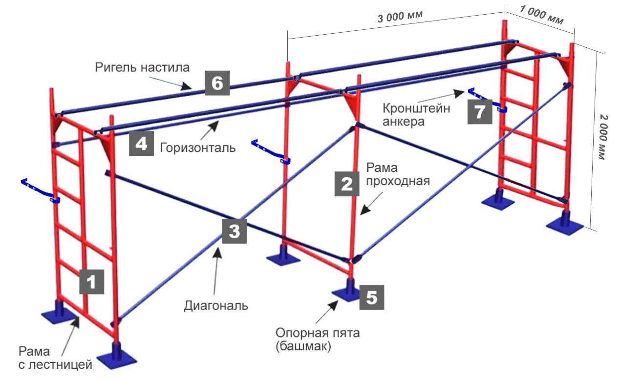 Схема сборки 2 секций строительных рамных лесов