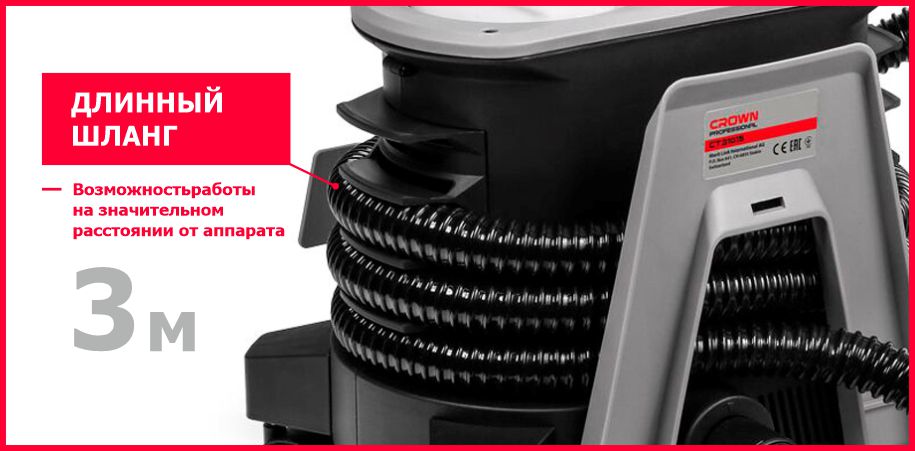 Окрасочный аппарат оснащен длинным шлангом (3 метра), позволяя отходить