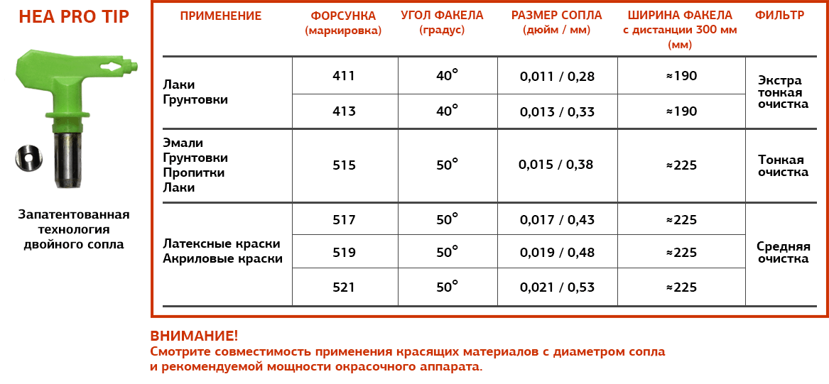 Форсунки HEA Pro Tip c революционной технологией High Efficiency Airless