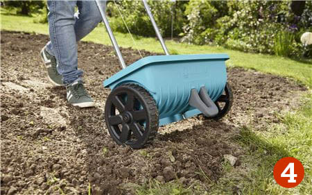 Разбрасыватель-сеялка Gardena L обеспечивает особо равномерное распределение материалов