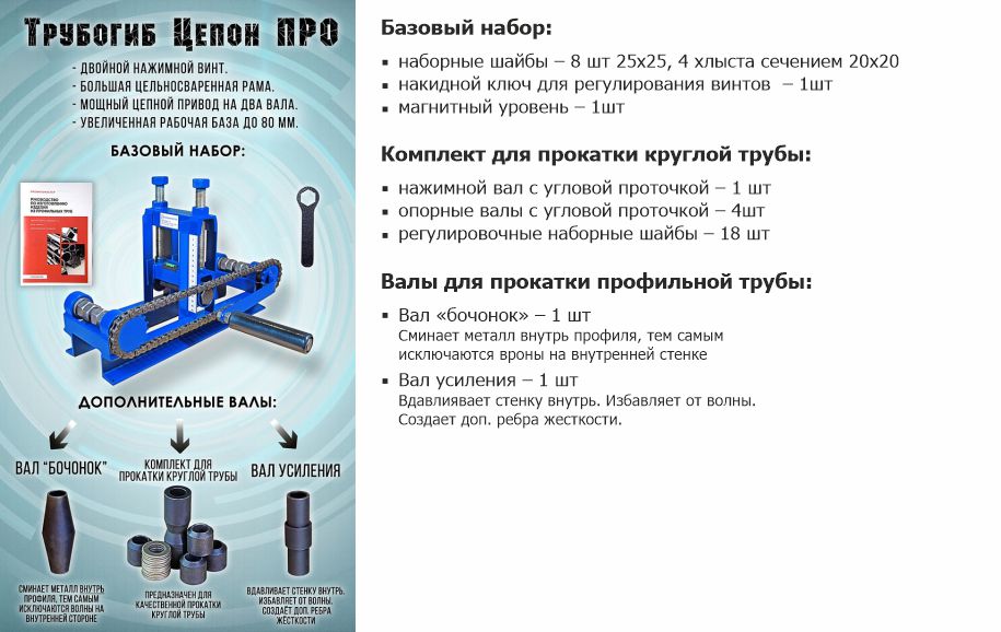 Комплектация трубогиба / профилегиба ЦЕПОН ПРО: